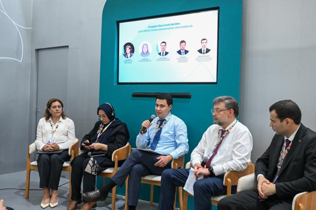 The panel was moderated by representatives of Azerbaijan and featured inaugural remarks from H.E. Mr. Mukhtar Babayev, COP29 President and Representative of the President of the Republic of Azerbaijan on Climate Issues. The discussion proceeded with key speeches from high-level representatives of all five Caspian littoral states, UNEP, UN-Habitat and WMO, including: